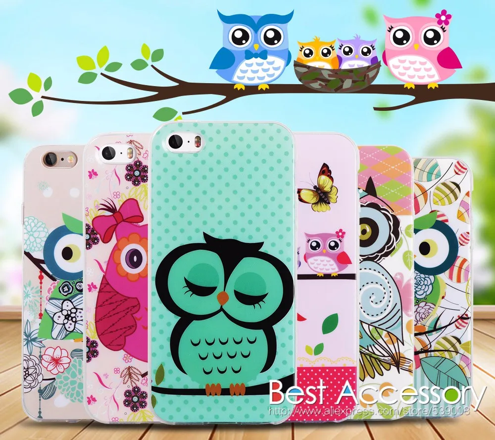 lancase用iphone 5 sケースかわいいフクロウソフトtpuジェルシリコンケースのためiphone 5 5 s se 6 6 s 6プラス7 7プラス8 8プラス電話ケースカバー
