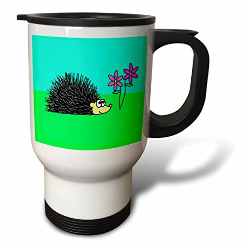 3dRose Hedgehog and Purple Flowers Travel Mug, 14-Ounce