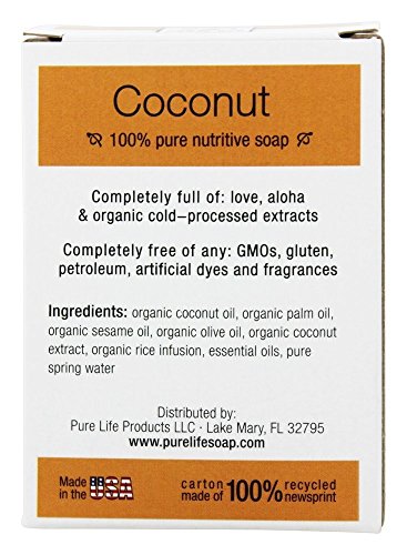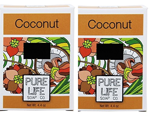 Pure Life Soap Co Coconut Soap Bar (Pack of 2) With Sesame Oil, Olive Oil, Coconut Extract and Rice Infusion, 4.4 oz Each