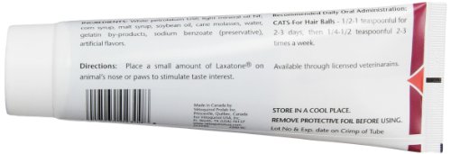 -. Binding : Misc. -. Brand : Vetoquinol -. EAN : 0017030023008 -. Feature : Gentle but effective lubricant / Elimination of hair balls in cats / Predictable results and ease of use has made it the industry standard hair ball remedy -. Label : Vétoquinol USA -. Manufacturer : Vétoquinol USA -. Model : 410615 -. MPN : 410615 -. NumberOfItems : 1 -. PackageQuantity : 1 -. PartNumber : 410615 -. ProductGroup : Pet Products -. ProductTypeName : PET_SUPPLIES -. Publisher : Vétoquinol USA -. Studio : Vétoquinol USA -. Title : Vetoquinol 410615 Laxatone, 4.25 oz -. UPC : 017030023008