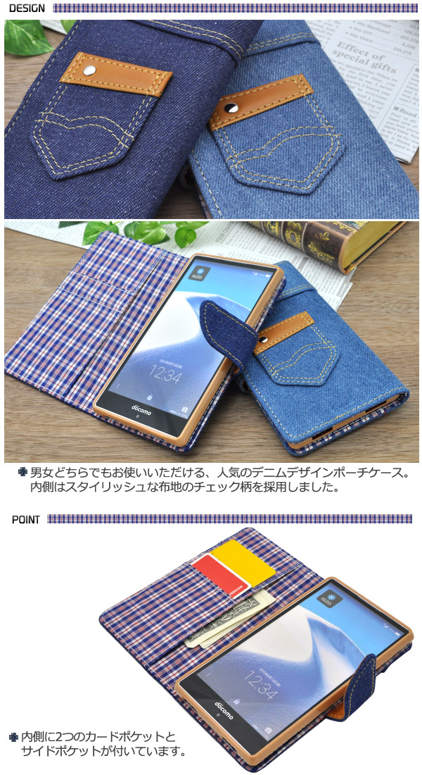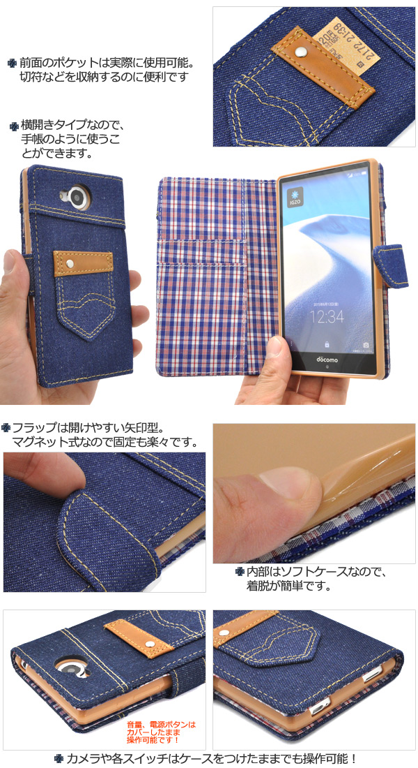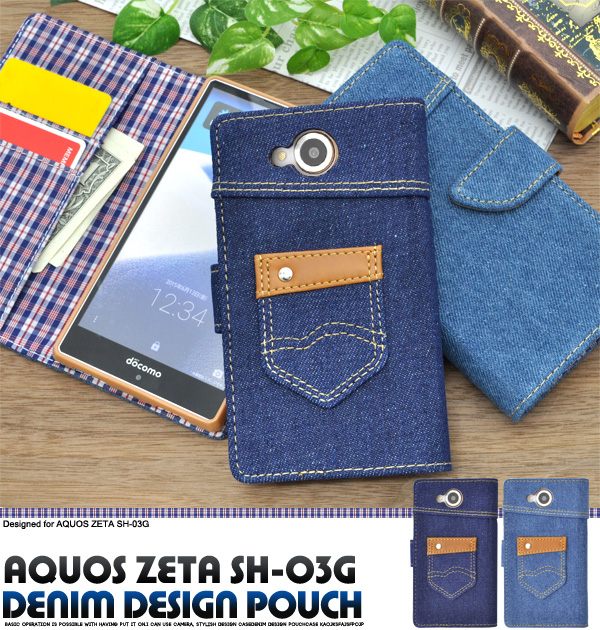 AQUOS ZETA SH-03G用デニムデザインケースポーチ(ジーンズデザイン)