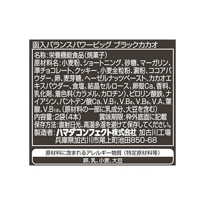 원본상품명: ハマダコンフェクト バランスパワ ビッグ ブラックカカオ 2袋(4本)入×8個