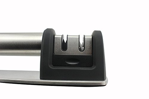 COMFORTABLE & SAFE WITH NON-SLIP GRIP - A non-slip base provides a secure grip and keeps the sharpener steady and easy to hold while sharpening your knives effortlessly. During repetitive sharpening motions the non-slip bottom ensures safety by providing more control and avoiding unnecessary accidents when sharpening your blades. Also Its handle located to the side of the rods away from the moving blade for the safely of your hand and for the comfort of your wrist through the sharpening process.