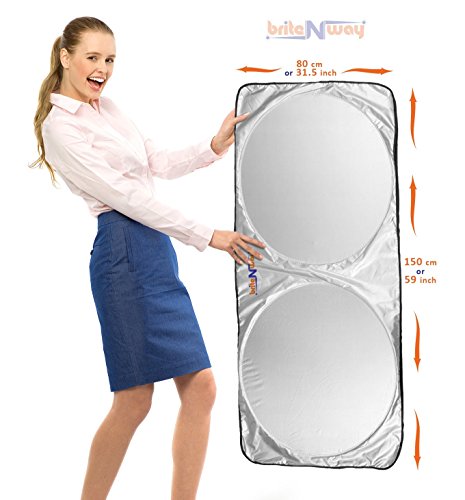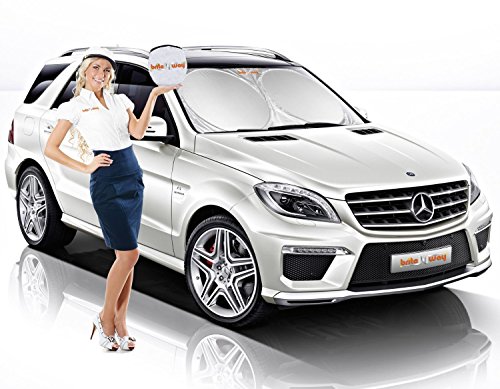 *SUPER EASY APPLICATION and FOLD FEATURE: Brite n Way’s Jumbo Car Sunshade is big in more ways than one. Firstly, the EASY application which is offered via our brilliant POP UP feature provides simple weather oriented use. Folds in swift precision as well. SUPER EASY functionality is step one in guaranteeing a ‘cooler’ ride.