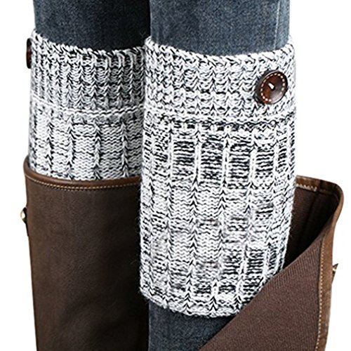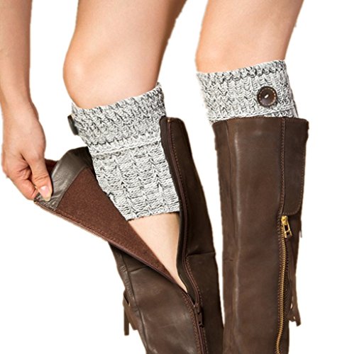 -. Feature : KNITTED STYLE WITH VINTAGE BUTTON: Women short leg warmer boot socks are approx 7.9 inches long (include 2 inches for topper) with wooden button. These crochet knit boot cuffs are light-weight and ultra stretchy. Easy to pull on and down, comfortable for long time dressing. Perfer match the fall and winter outfit. And these cable knit eg warmers make you feel warmer all day long. / CUTE TOPPERS PERFECT MATCH YOUR CLOTHINGS: Whether you call them ankle-cuffs or toppers, you need a pair of these cable leg warmers! We've taken the comfort of your favorite basic women leg warmers and topped it with buttons. They're the perfect pairs to add some feminine flair to your favorite booties. Our boot toppers are very cute and fit perfet over ankle boots, Martin, dress boots and so on. It gives them a cute vibe with wearing them with skinny jeans or even leggings. / MAKE YOUR OUTFIT STAND OUT: They can keep warming, protect your legs. These soft, stretchy boot cuffs are thick and cozy enough, but occupy less room in your boot. The crochet knitted cuffs fit nicely underneath and don't bunch up inside your boot or fall down at any point during the day. And this crochet boot cuffs will not just make your legs feel warm but would also make your outfit stands out! / CUSTOMER SAID: "I loved the socks would show at the top of the boots but it difficult to create. Usually my boots too tight to wear thick knee socks in addition to my legging or jeans. These crochet leg warmers are the perfect solution." " These are perfect for bridging the gap between socks and boot tops, for adding some cushioning where the boots hit your leg, and for a cozy warmth for the ankles, especially when thick socks don't work with your footwear. Very nicely made-look hand knitted." / IDEAL GIFT - These boot toppers are grace gift for any friends, women or your beloved ones: fall or winter, Birthdays, Christmas, Black Friday, Cyber Monday. These would be the best cuffs without wash and always ready to wear on your outfit. They are cute and macth your boot easy, available in several distinctive designs, and keep the legs warm.