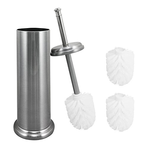 High quality metal canister with new and improved metal stem for increased quality and longevity the 3 included brush heads completes this superior toilet brush insuring years of use. Easy assembly; dimensions are 15.5 inches of total height with a base footprint of 4.5 inches. limited warranty