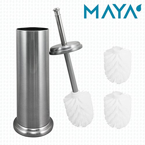 MAYA 6459 Toilet Brush in Stylish Canister with 2 Replacement Brush Heads Brushed Nickel finish