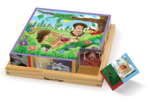 -. Artist : Melissa & Doug -. Binding : Toy -. Brand : Melissa & Doug -. EAN : 0000772092500 -. Feature : Made using the highest quality materials / Tested to be safe and durable / Great fun for your baby and child / Six puzzles in one / 16 cubes rotate and reposition to piece together 6 Old Testament scenes / 6 Bible scenes include: Noah's Ark, Adam & Eve, David & Goliath, Daniel & the Lions' Den, Jonah & the Whale and Moses & the 10 Commandments / Solid-wood construction / Great for hand-eye coordination, problem solving and building familiarity with favorite Bible stories -. IsAdultProduct : 0 -. ItemPartNumber : 9250 -. Label : Melissa & Doug -. Manufacturer : Melissa & Doug -. Model : 9250 -. MPN : 9250 -. PackageQuantity : 1 -. PartNumber : 9250 -. ProductGroup : Toy -. ProductTypeName : TOYS_AND_GAMES -. Publisher : Melissa & Doug -. Studio : Melissa & Doug -. Title : Melissa & Doug Old Testament Cube Puzzle -. UPC : 000772092500 -. Warranty : No Warranty