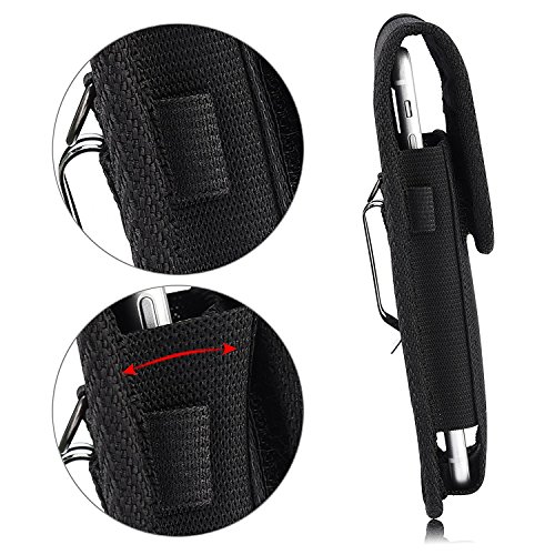 AIScell Pouch Clip Holster For Apple Iphone X, 8, 7, 6s, 6~ Black Tough Nylon Carrying Canvas Flap Case Duty Metal Belt Clip With Stylus Pen And Cleaning Cloth(Great Fit Thin Cover Or Naked Phone)