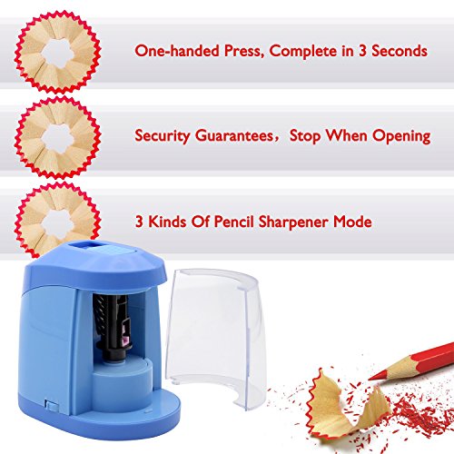 Electric Pencil Sharpener Automatic Heavy Duty Self Sharpening Colored Pencils Battery/Plugging In Operated Portable For Kids School Office Home Use (Blue)