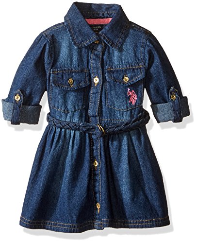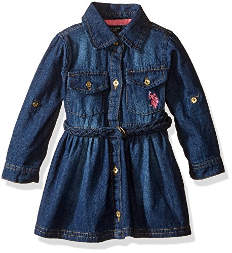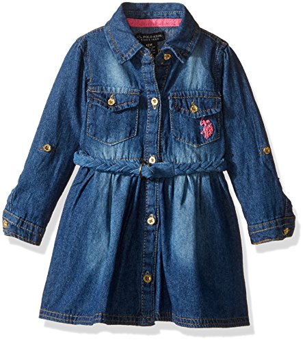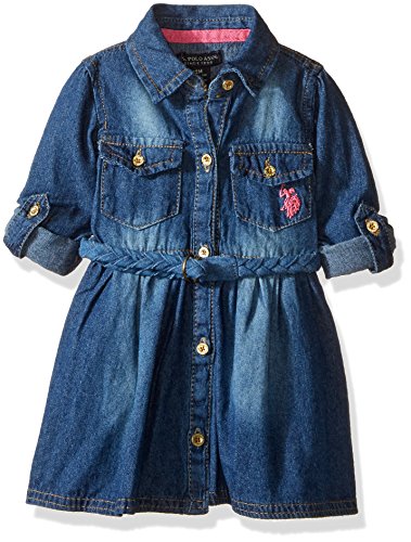 -. Binding : Apparel -. Brand : U.S. Polo Assn. -. Department : baby-girls -. Feature : Soft tencel denim / Two button closure flap pockets / Tab to hold rolled cuffs / Braided faux suede belt / Button front -. Label : US Polo Assn. Children's Apparel -. Manufacturer : US Polo Assn. Children's Apparel -. MPN : A12348D3V -. PartNumber : A12348D3V -. ProductGroup : Apparel -. ProductTypeName : DRESS -. Publisher : US Polo Assn. Children's Apparel -. Studio : US Polo Assn. Children's Apparel -. Title : U.S. Polo Assn. Girls' Classic Denim Dress with Faux Suede Braided Belt