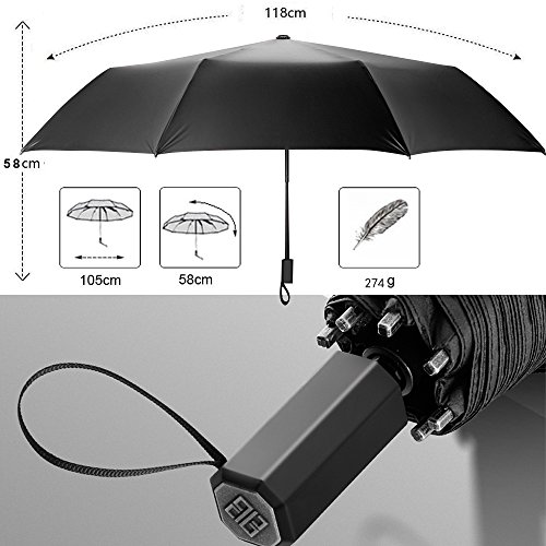 -. Title : 折りたたみ傘 軽量Flinelife おりたたみ傘超 軽量274g手動開閉 折り畳み傘 コンパクト 25cm 高強度グラスファイバー伞骨 Teflon撥水加工 210T最高級のNC布 耐風撥水 傘テフロン ブラック 晴雨兼用 男女通用 通勤 通学 旅行
