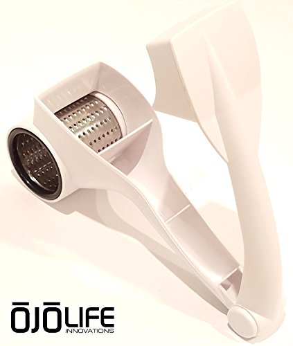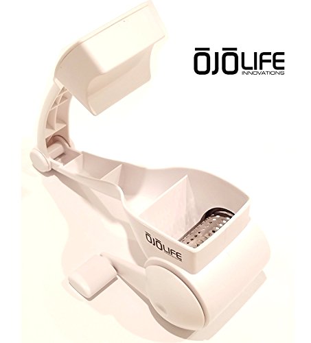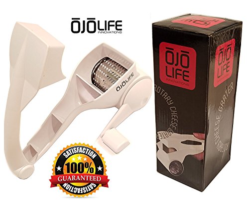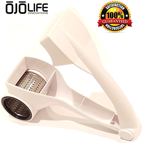 - : )) - TOP RATED CHEESE GRATER: Conveniently designed, when using oJoLife Innovations Rotary Cheese Grater, it is guaranteed to be the best grater you have ever used. This is ideal item for fruit, vegetables, nuts, cheese, chocolate and more!