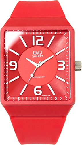 -. Title : [シチズン Q&Q]腕時計 ビッグケース ウレタンバンド カジュアル ポップ スクエア 立体インデックス レディース メンズ ボーイズ VR30J010 レッド