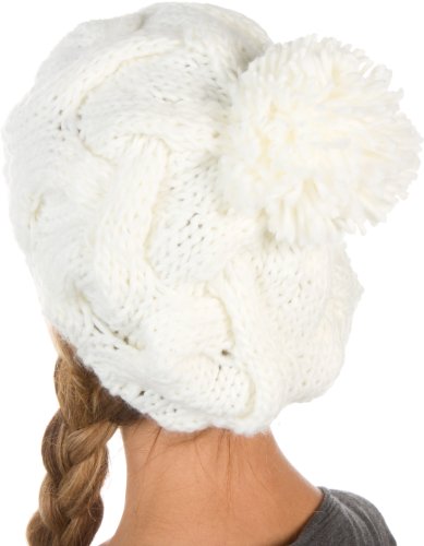 -. Title : Sakkas Cable Knit Pom Pom Thick Slouch Hat