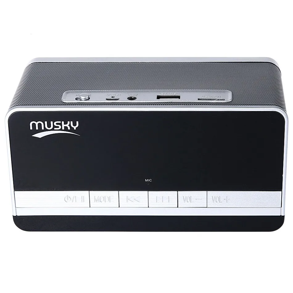 Small but powerful, this portable Bluetooth speaker is designed to deliver high-quality sound. This MUSKY Bluetooth stand features two 5-watt stereo speakers. The output power of its high fidelity audio system is equivalent to that of two 5-watt single Bluetooth speakers. The advanced equalization technique allows the stereo audio system to deliver high fidelity sound without any distortion at all