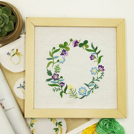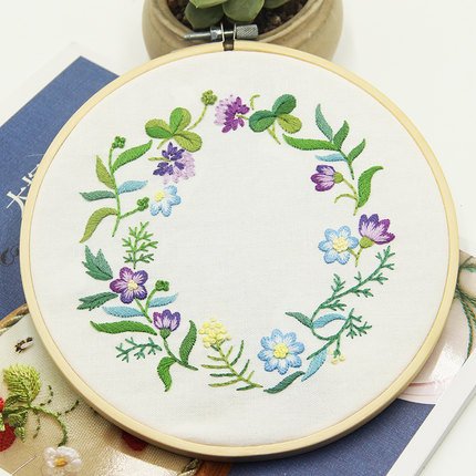 Embroidery Kit for beginners, Gift Set, Garland-Purple Design (No Frame)