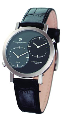 -. Title : Charles-Hubert, Paris Men's 3549 "Premium Collection" Stainless Steel Dual-Time Watch with Black Leather Band