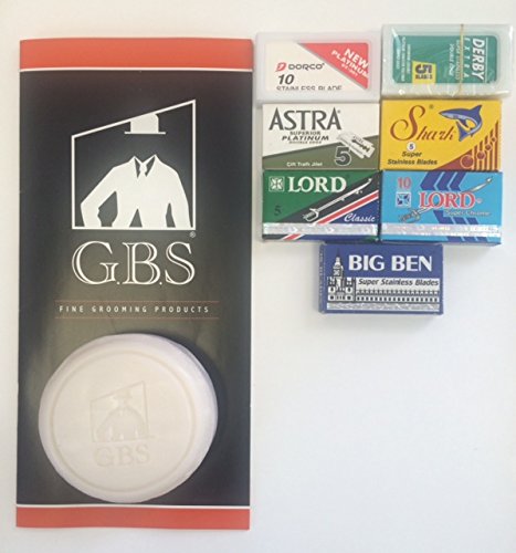 50 Double Edge Razor Blades variety pack comes with 97% all natural Gbs shaving soap