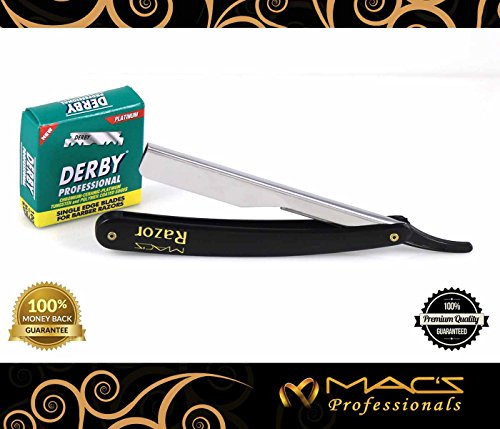 Macs Professional Black Plastic Handle Barber Double Edge Half Blade Barber Safety Razor with Hi-Chromium Derby 100 Count Double Edge Half...