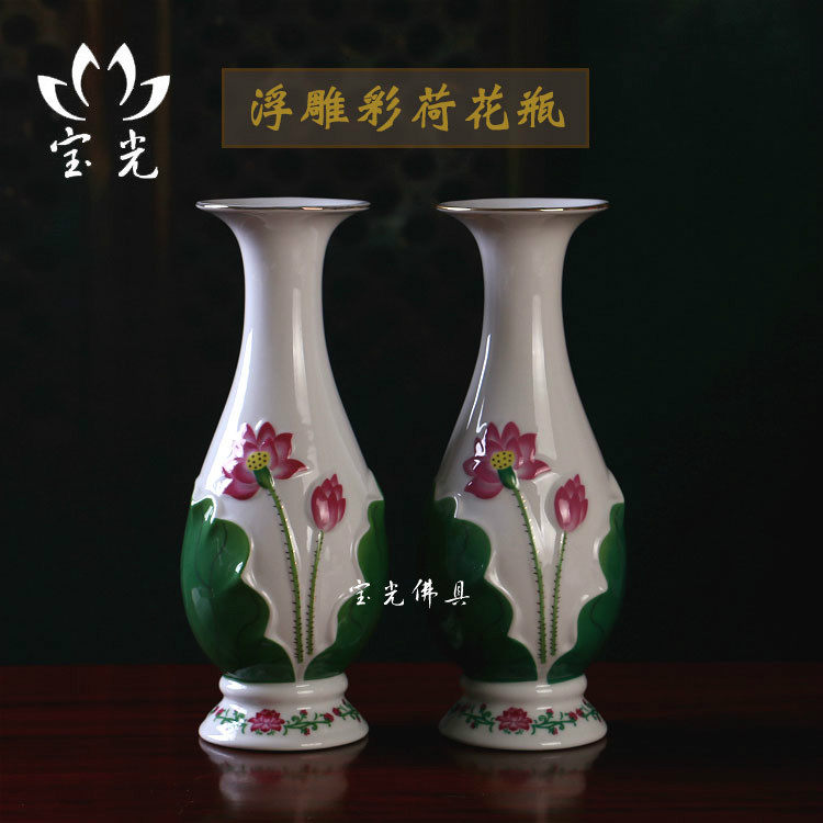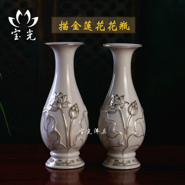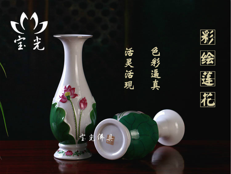 宝光佛具观音净水瓶陶瓷供佛花瓶佛前莲花瓶佛教用品佛堂家居供具