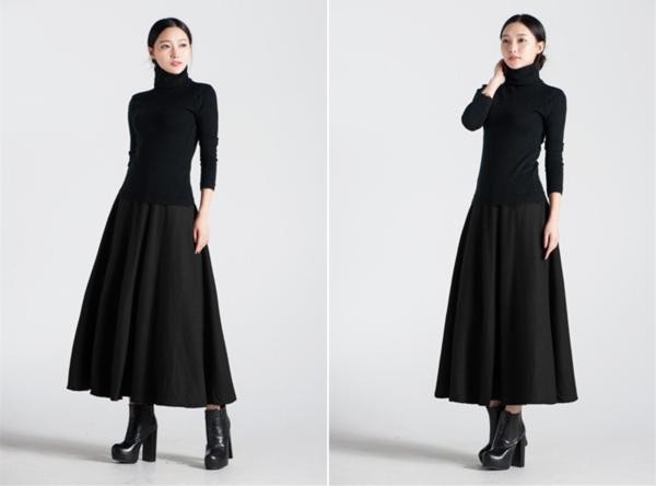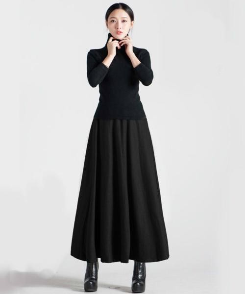 シンプル☆ハイウエスト Aライン フレア ロングスカート