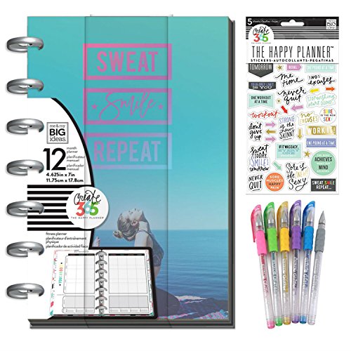 Studio : Mixed Publisher : Mixed Binding : Misc. Product Description Get your FIT on! This 12-month health and fitness planner is filled with creative and inspirational artwork to motivate and encourage you as you track your health. The Fitness Edition Happy Planner Mini has Sturdy, laminated covers and tabs. The Covers are 5.125" x 7.5" and the Pages are 4.5" x 7". You can track Breakfast, Snack, Lunch, Dinner, Calorie Total, Exercise, Water Intake, Goals and Notes. There are progress reflection pages at the end of each month. The included Create 365 fitness stickers and glitter gel pens are a wonderful addition to help you organize and plan a happy and healthy life. 0