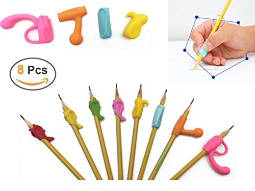 Pencil Grip, Louzedaya Ergonomic Pencil Grip Writing Aid Pen Holder Writing Correct Handwriting Posture 5 Cute Animaux Shapes Assorted Colors for Kids Adults Kindergarten Righties or Lefties(8 PCS)