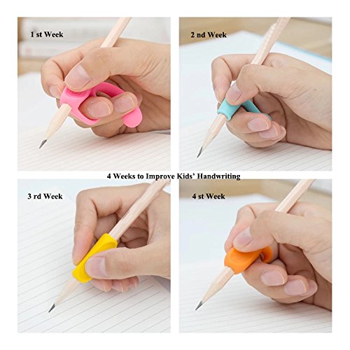 - 4 WEEKS TO CORRECT WRITING POSTURE - We try to correct kids' writing posture through 4 different stages(28 days) by using different shape of animal grip. After the 4 stages the child will have a good writing posture. Our pencil grips can always be used because it is ergonomic, writing with it can be easier and using less force.