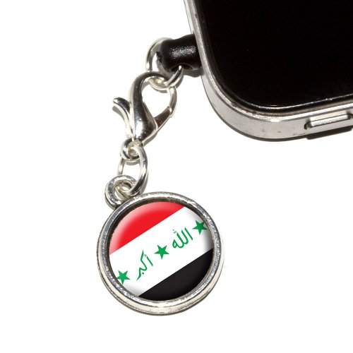 Graphics and More Iraq Iraqi Flag Anti-Dust Plug Universal Fit 3.5mm Earphone Headset Jack Charm for Mobile Phones, iPhone, iPod, iPad and Galaxy - 1 Pack - Non-Retail Packaging - Antiqued Silver