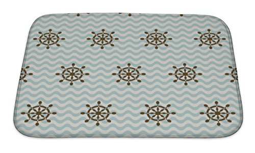 Gear New No Slip Microfiber Memory Foam Pattern of Hand Wheels & Waves Bath Rug Mat, 24" X 17"