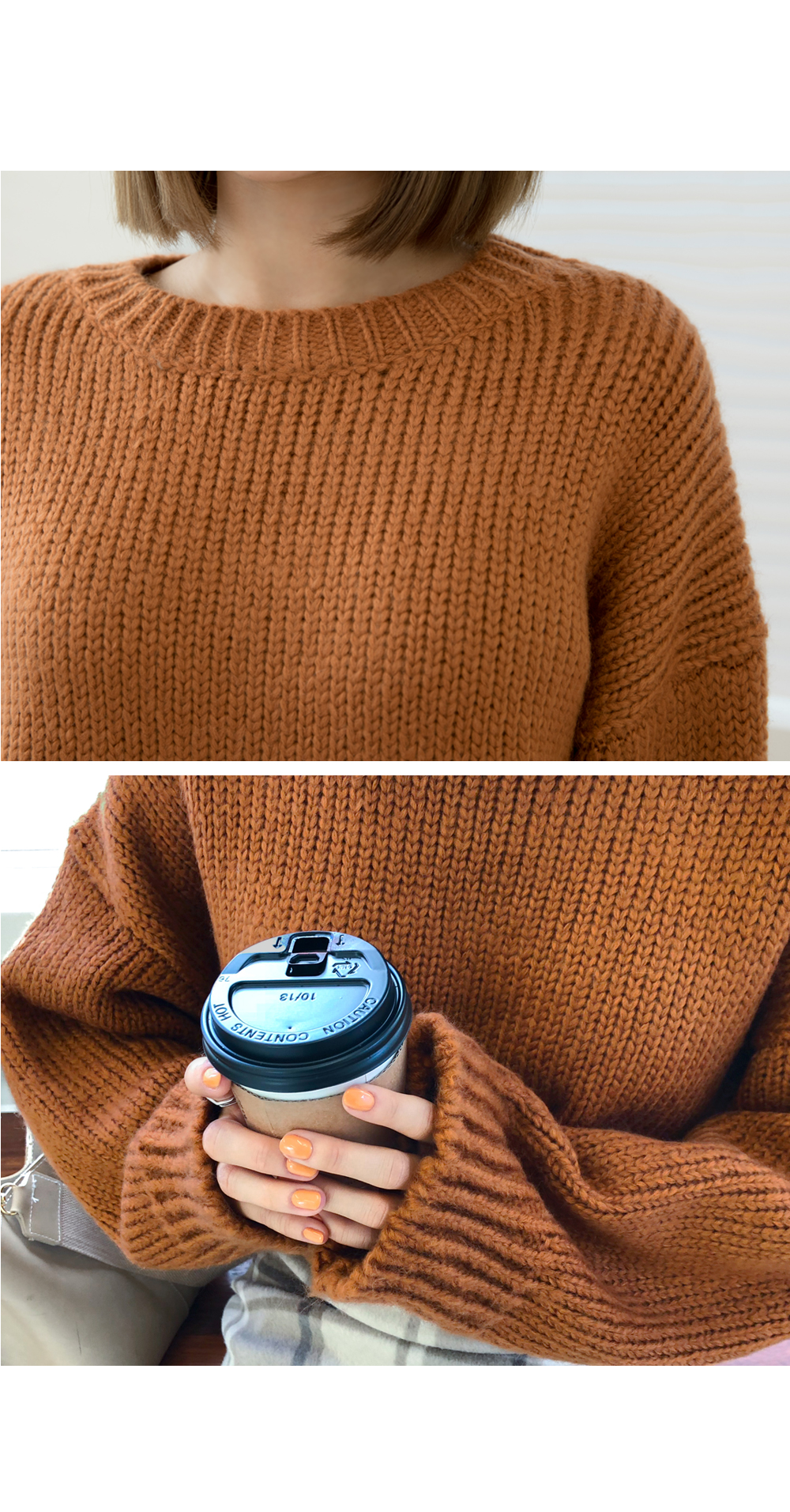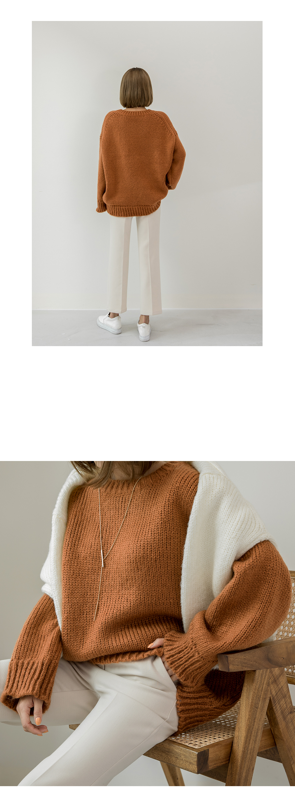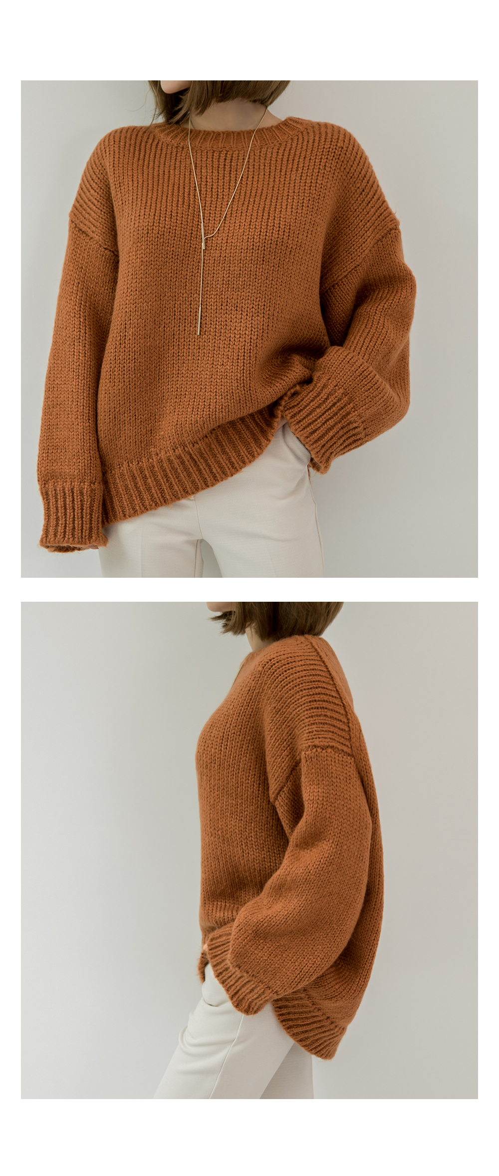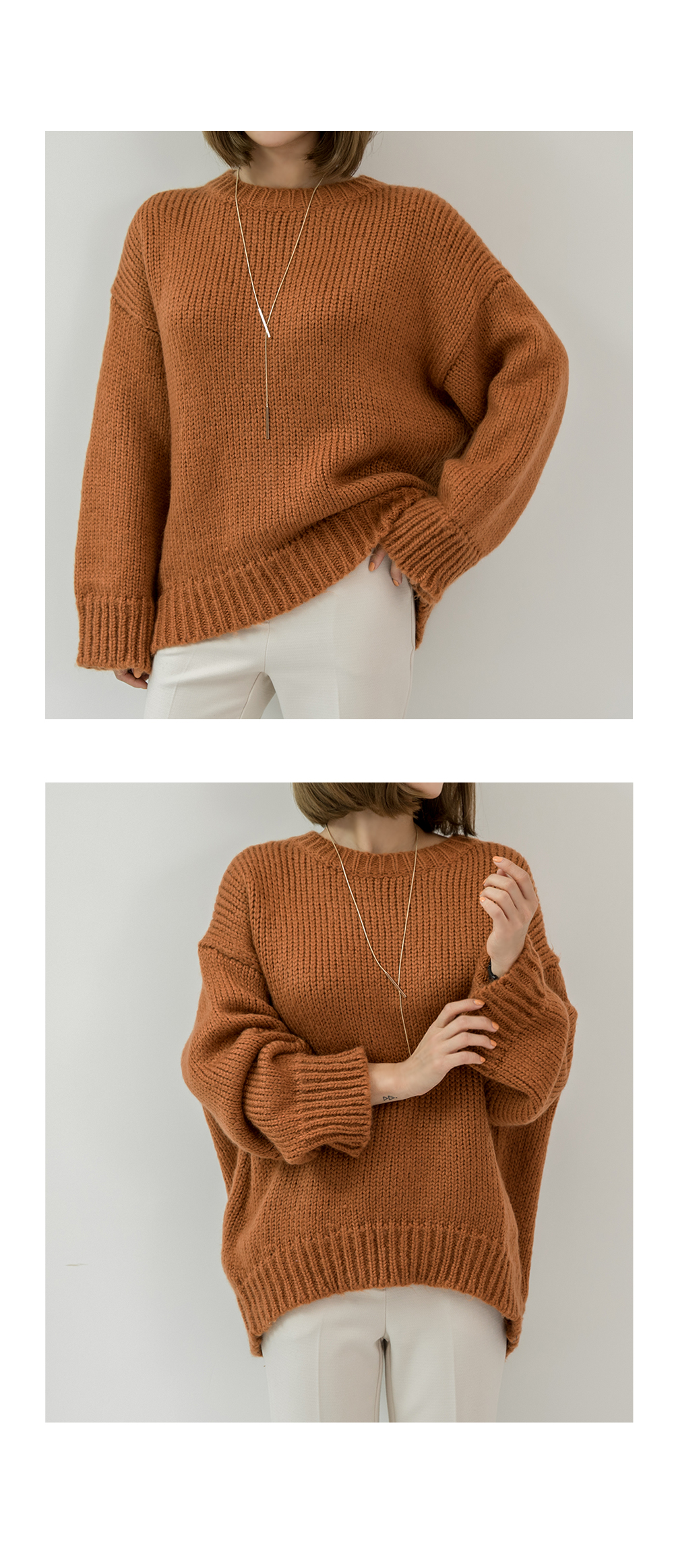 라운드 네크라인에 ?끔한 디자인으로 제작된 니트를 소개할게요~