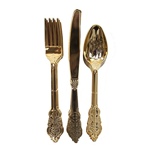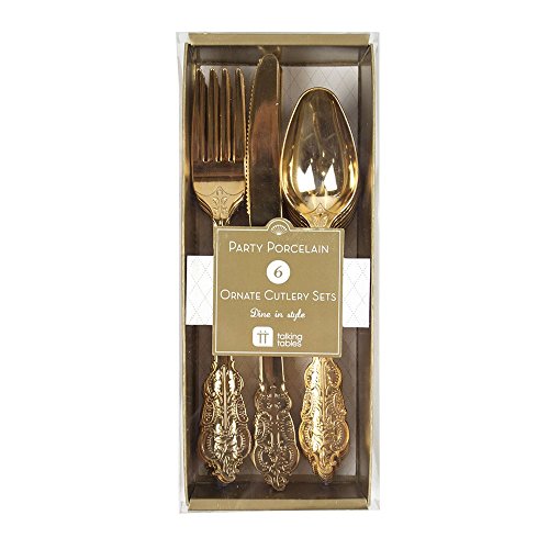 Talking Tables 18 Piece Porcelain Disposable Party Cutlery Set, Gold