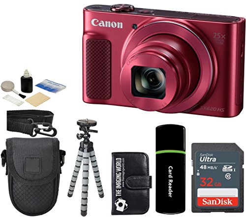 Canon PowerShot SX620 HS 20.2MP Digital Super 25x Optical Zoom Camera (Red) + SanDisk 32GB Card + Case + Tripod - 32GB Deluxe Accessories Bundle
