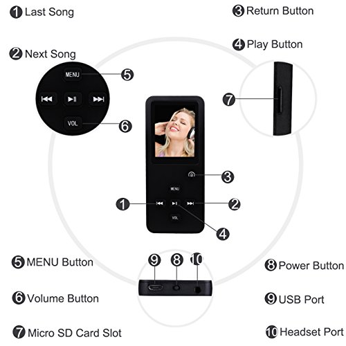 BREAK-POINT SPIELEN UND KANN EXPANDIERBAR AUF 32GB: Peficecy MP3-Player kann sich erinnern, wo Sie aufgehort haben, wenn wieder auf. Und Sie konnen eine 32GB Micro SD-Karte, um den Speicher zu erweitern