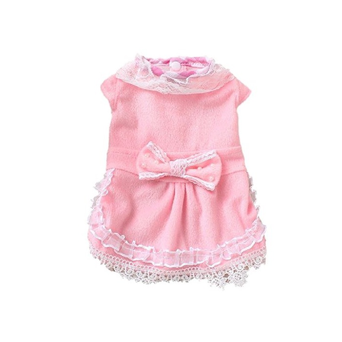 원본상품명:Rant Bell 小型犬用 ワンピ?ス 背中リボン ビ?ズ レ?ス 前ボタン式 ピンク S