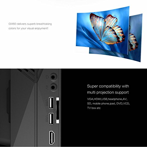 -. Title : Mengshen® Full Color 130" Portable LED Projector 800x480P HDMI Interface 1000 Lumens for Home Theater Media Player Video Games TV Movie with USB/AV/SD/VGA Output and HDMI Cable MS-GM60
