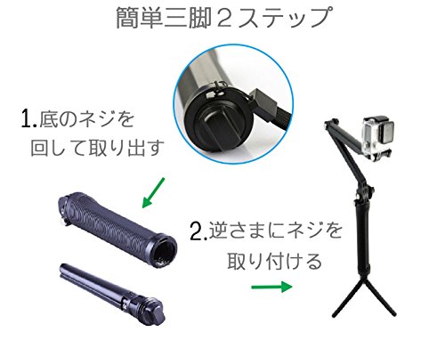 -. Feature : 【本体サイズ】収納時:約20cm、 延ばした時:最大約52cm、本体重量:約180グラム / 【自撮り棒はGopro Xiaoyi SJCAMなどのカメラに対応】 / Berubow 折り畳み式自撮り棒はGoPro (hero3/hero4)、LEVIN、MUSON、xiaoyi、SJCAM、DBPOWER、AKASOなどのアクションカメラ対応の 3Way アクセサリーです。 / 一台で一脚(自撮り棒)、ハンドグリップ、三脚として3通りの使用が出来きる延長アームタイプウェアラブルカメラマウントです。 / ミニ三脚がグリップ底部に内蔵されております、スティックに装着して撮影することが可能です。完全に折り畳むためには、ロック解除ボタンを押しながら折りたたみます。