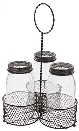 Diamond Star Corp 14'' x 9.5'' Clear Set of Three Glass Jars with Metal Hanging Basket