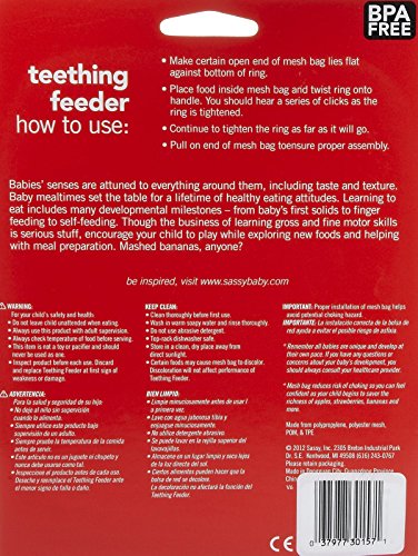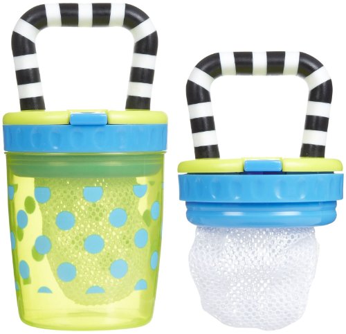 • Size allows child to hold and self-feed. Mesh bag allows child to safely discover whole foods. Snap-on cover keeps food clean and ready to eat. Includes 2 teething feeders and 2 additional replacement bags.