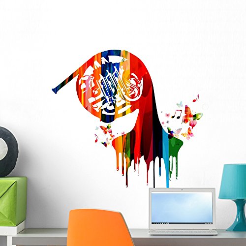 Wallmonkeys French Horn Colorful Design Peel and Stick Wall Decals WM77097 (24 in H x 24 in W)
