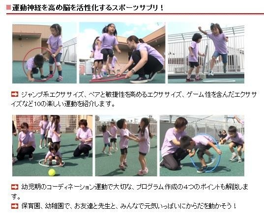神経系トレーニングとして注目を浴びている「コーディネーショントレーニング」を幼児向けに応用した運動。ジャンプ系運動、敏捷性を高める運動、ゲーム性を含んだ運動の3つのテーマ別に運動を紹介します。保育園や幼稚園で楽しくできるコーディネーション運動です。 |