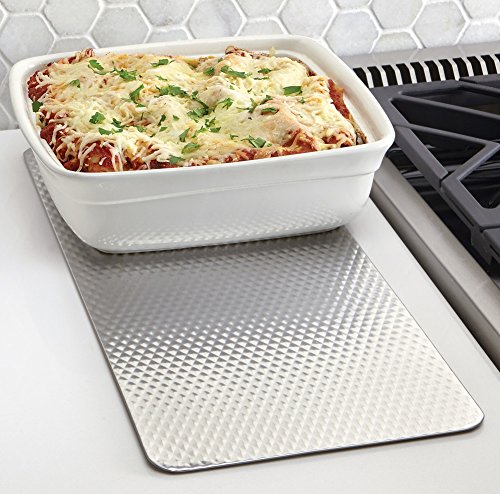 Insulated counter mats featuring non-skid "grip" backing to prevent sliding, and textured metal surface that easily wipes clean with a damp cloth.