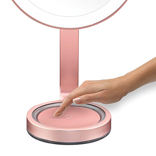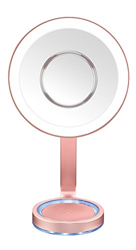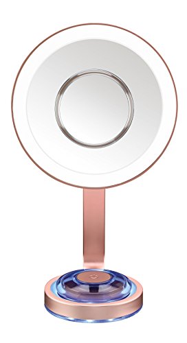 Conair Single-sided Lighted Makeup Mirror With Led Lights; 1x Magnification With Removable Magnetic 10x Magnified Spot Mirror; Rose Gold Finish With Blue...