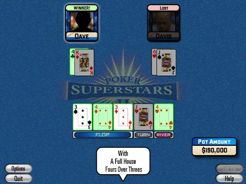 Poker Superstars II raises the stakes with more superstars, a brand new poker AI and a bigger tournament! Powered by a 'first of its kind' artificial intelligence system that has learned to win by playing millions of simulated tournaments, Season 2 will challenge you to play your best game ever. Import your own photo into the game and become a Poker Superstar. Then get ready to battle against 15 of poker's top players, with interactive pictures! The Superstars are ready to win, are you?