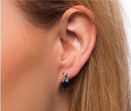 Enhance any wardrobe with these beautiful gemstone and diamond earrings. These earrings showcase elegant 5x7mm oval gemstones. Icy round diamonds accent the center stone. Crafted of shimmering 10-karat rhodium-plated white gold, these earrings are a wonderful addition to your jewelry collection. September birthstone.Feature