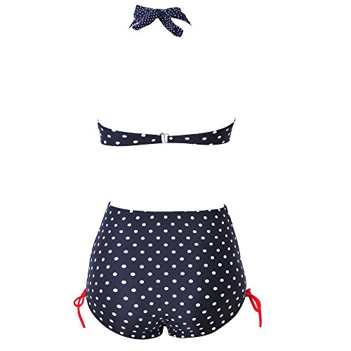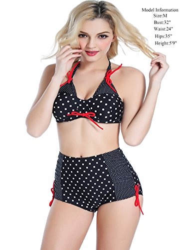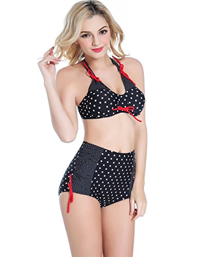 Title : Saslax Retro Polka Dot White Black Vintage High Waist Bikini Halter Swimsuit FBA S