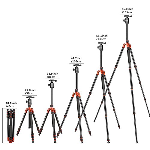 Dieses Produkt kann bis zu 165 cm verlangert und auf 46 cm gefaltet werden. Vier Abschnitte der Aluminiumlegierung machen die Beinrohre hohenverstellbar