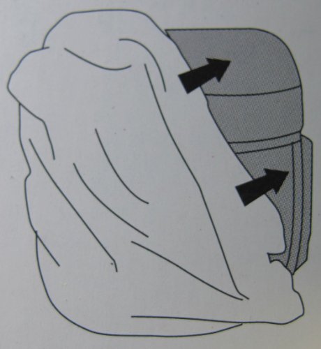angenahte Tasche zum Verstauen bei Nichtbenutzung, Netzeinsatz unten