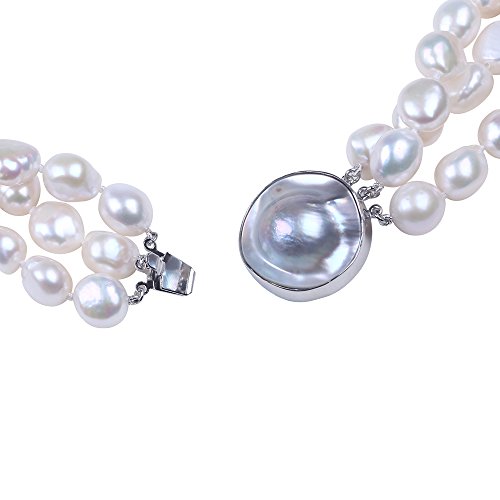 Exquisite 3 Row White Freshwater Pearl Necklace & Sterling Silver Baroque Pearl Clasp.